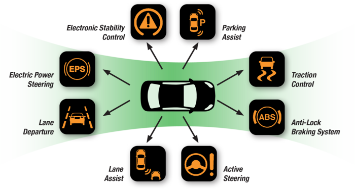 Passive refers to features that are designed to alert the driver but do not actively control vehicle movements. Common passive ADAS features include anti-lock braking systems (ABS), electronic stability control (ESC) and tire pressure monitoring systems (TPMS).