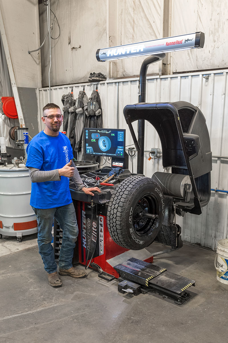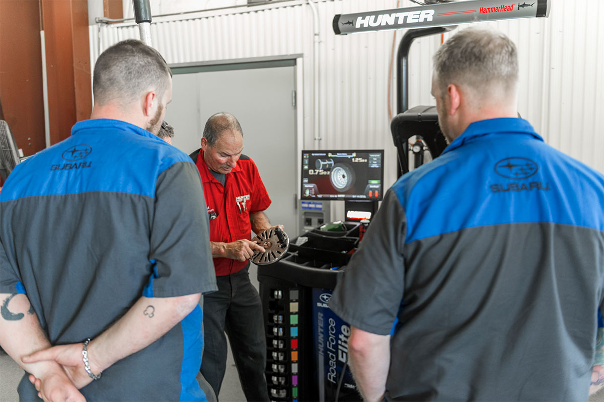 hunter service representatives with technicians and revolution tire changer